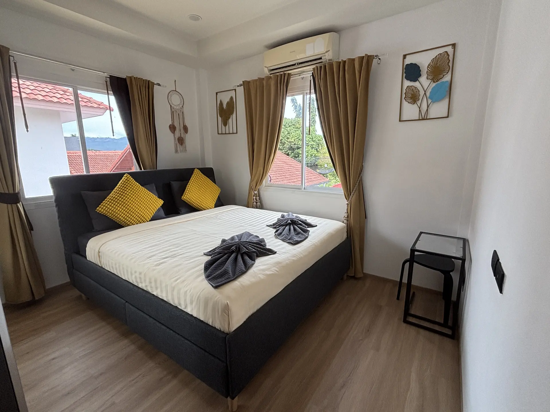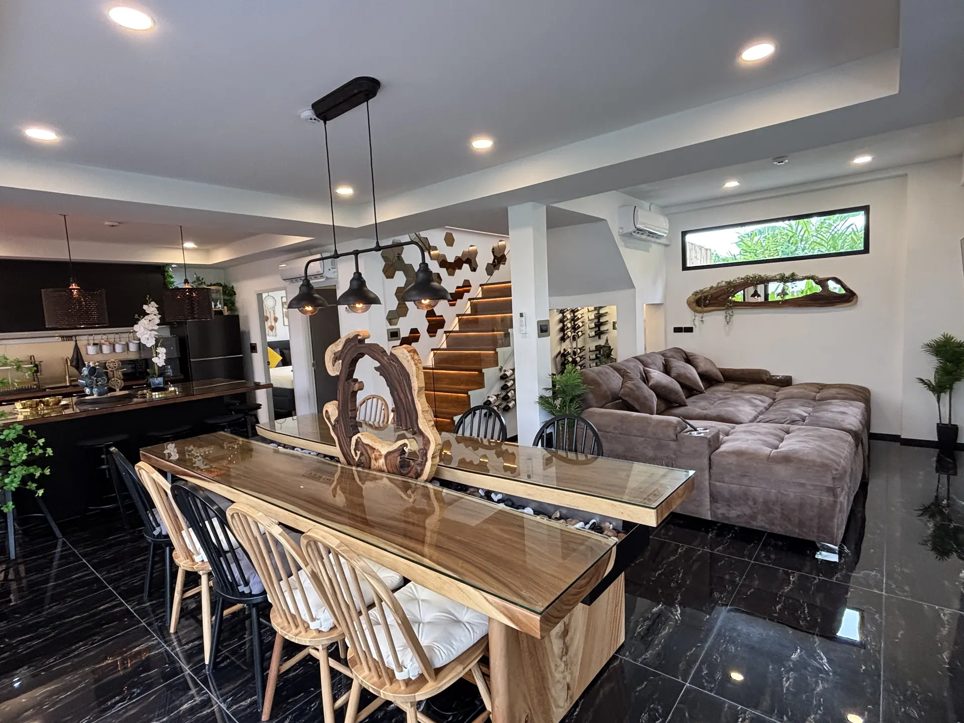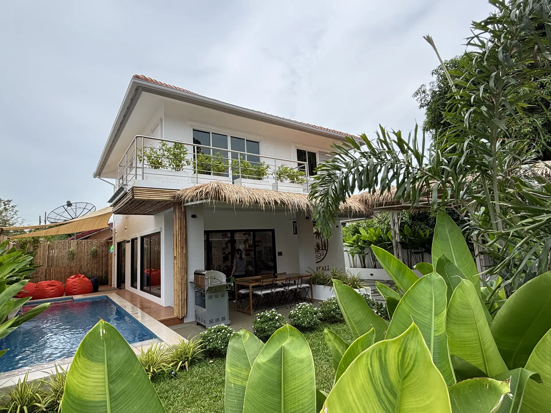 Located in the peaceful area of Bangrak, this elegant 5-bedroom villa combines privacy, comfort, and functionality, making it an ideal property for holiday rentals or a family residence. Nestled at the end of a quiet cul-de-sac, the villa offers a serene atmosphere while remaining close to the airport, beaches, and tourist attractions.