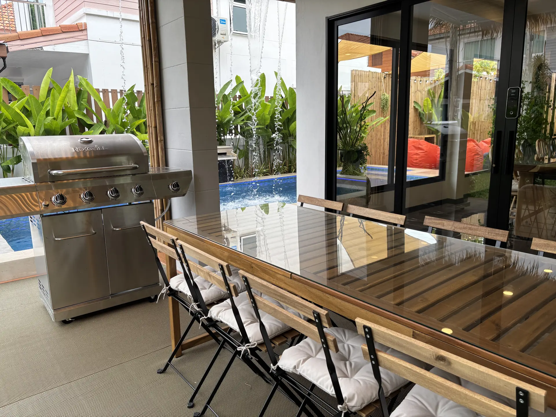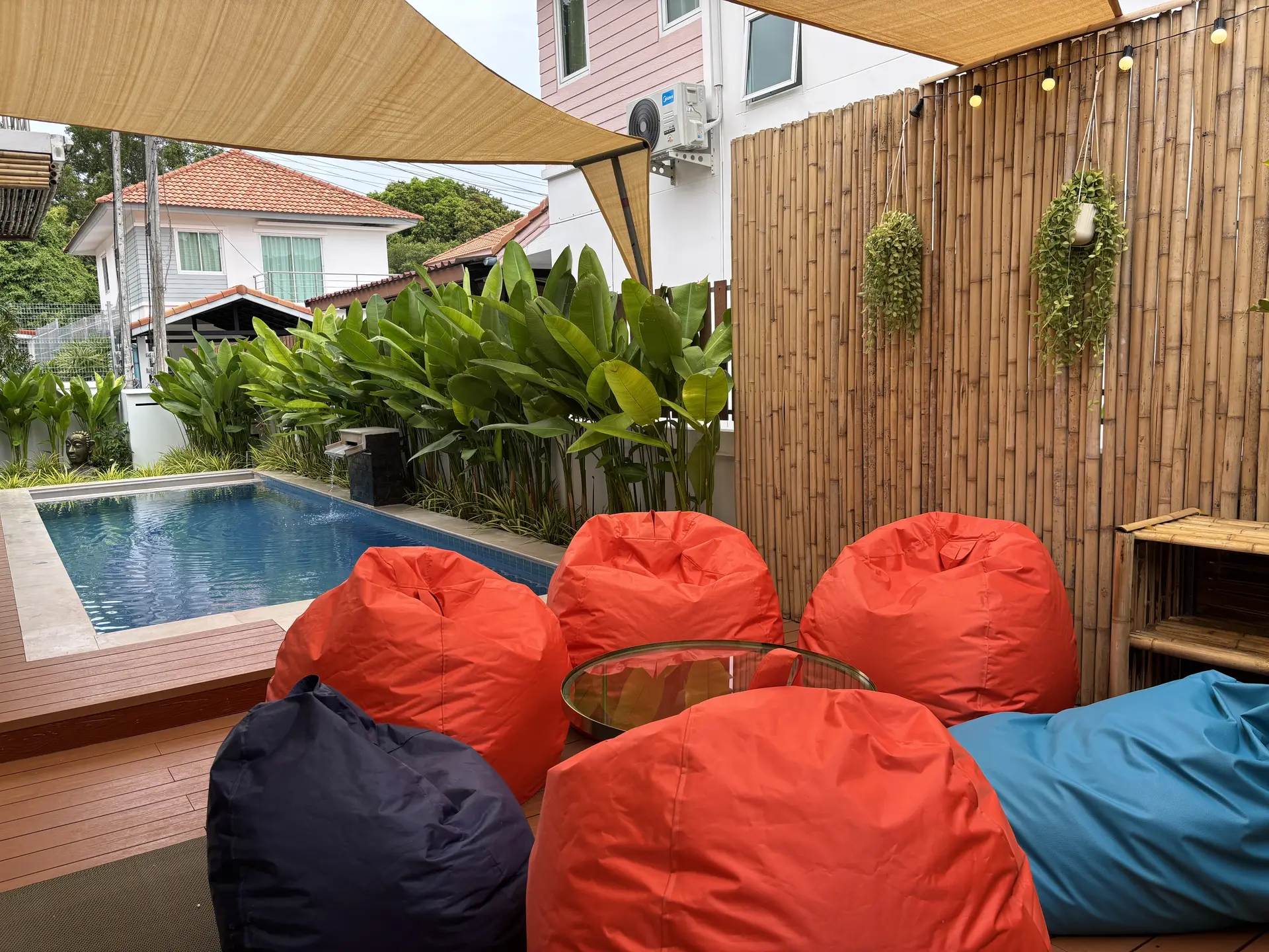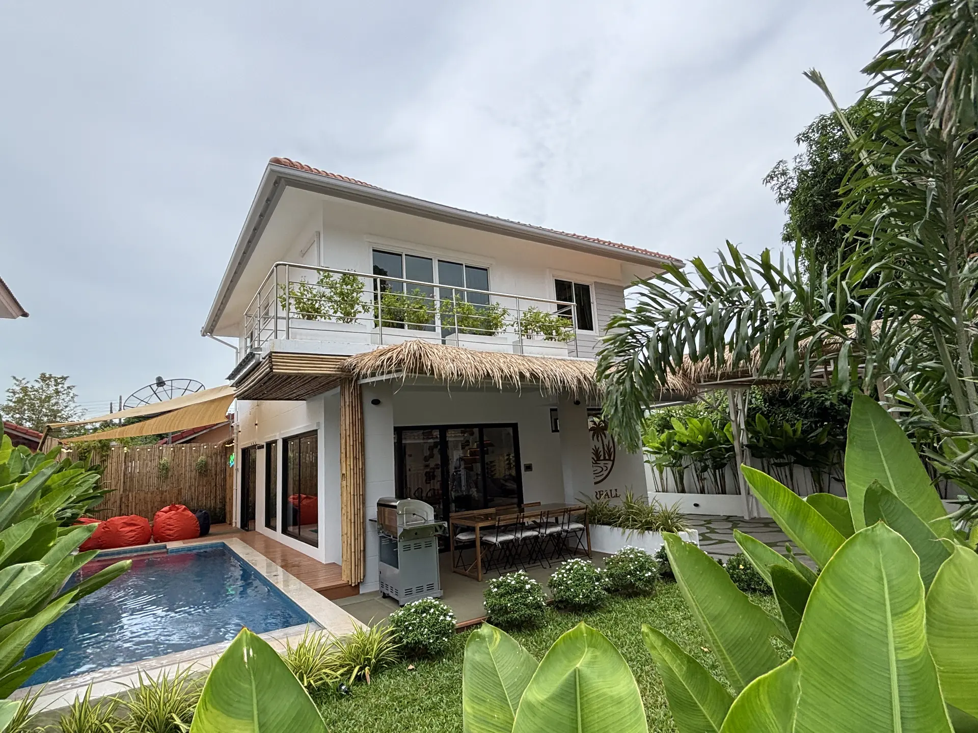 Located in the peaceful area of Bangrak, this elegant 5-bedroom villa combines privacy, comfort, and functionality, making it an ideal property for holiday rentals or a family residence. Nestled at the end of a quiet cul-de-sac, the villa offers a serene atmosphere while remaining close to the airport, beaches, and tourist attractions.